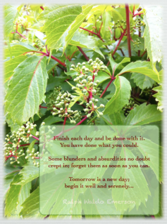 “Finish each day and be done with it. You have done what you could. Some blunders and absurdities no doubt crept in; forget them as soon as you can. Tomorrow is a new day; begin it well and serenely…” ~ Ralph Waldo Emerson