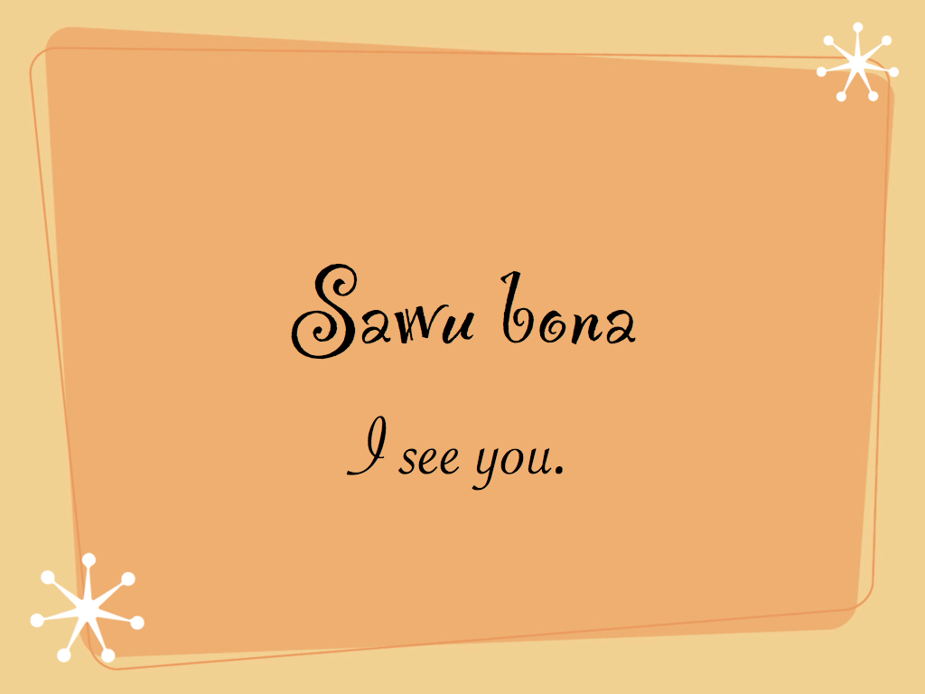 “In Zulu, a South African language, the word Sawu bona is spoken when people greet one another and when they depart. It means ‘I see you.’