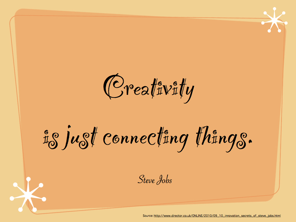 Creativity is innovation. If, as a country, we want innovators and innovative educators and businesses, then we must develop our ability to make connections in diverse ways.