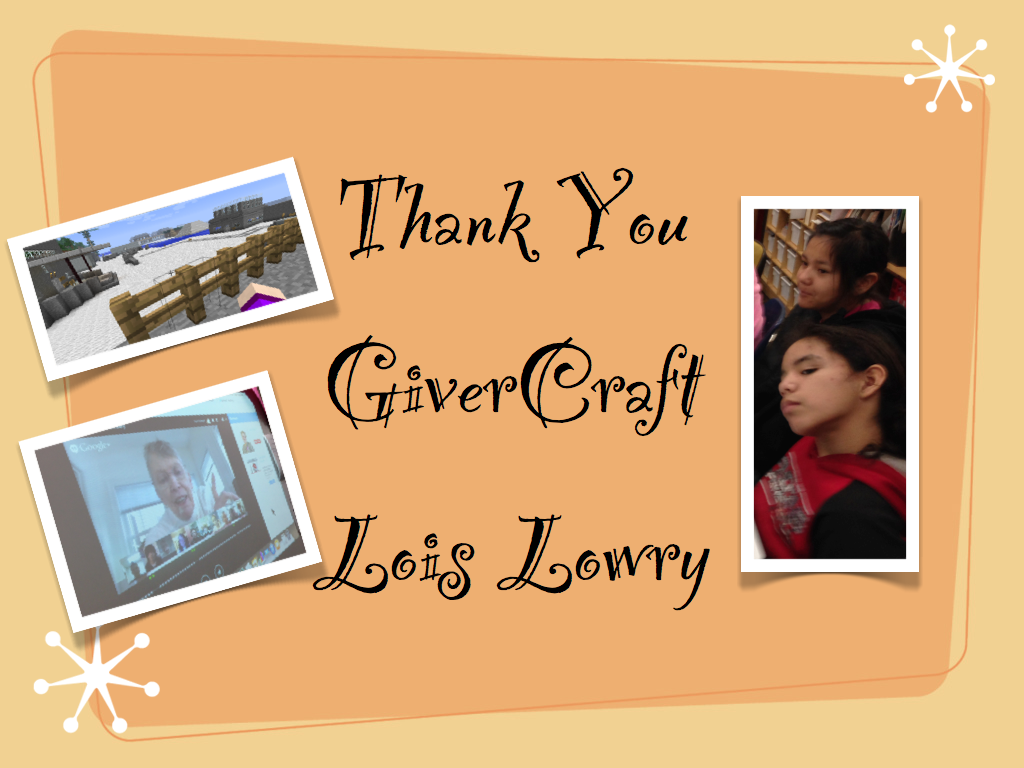 It’s been an amazing adventure: GiverCraft. We read The Giver by Lois Lowry; we joined the GiverCraft MineCraftEDU community. We built a community based on evidence from the story, then were thrown into chaos as the memories returned when Jonas, the Receiver, left, leaving the memories to be found around our GiverCraft community. We built the memories and shared them in snapshots of GiverCraft and in words that expressed our interpretations of the story: What if the memories returned to everyone?