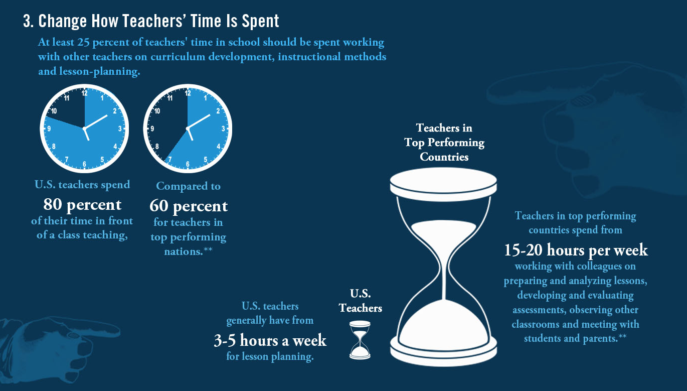 What is the answer? First of all, there’s research that American teachers work far more hours with far less collaboration and planning time than in other countries. Search it out. Speak up.