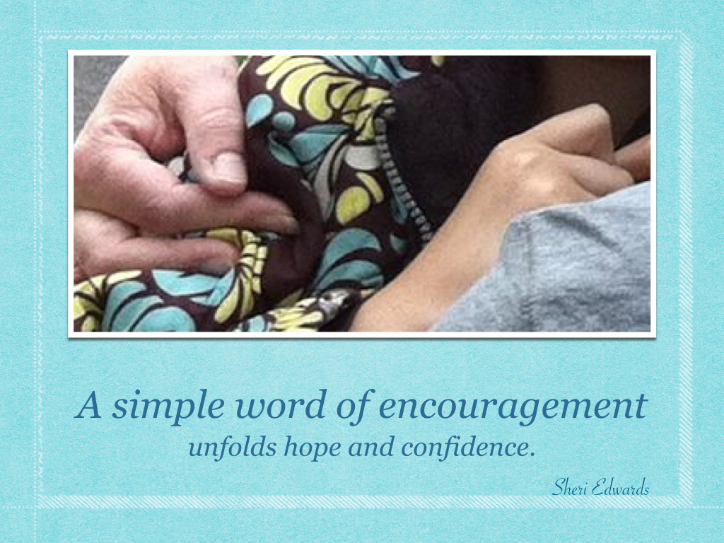 And those who encourage others offer hope — hope that may be the opening of a dream, the unlocking of a blocked learning, or the boosting of confidence to make it through the day.