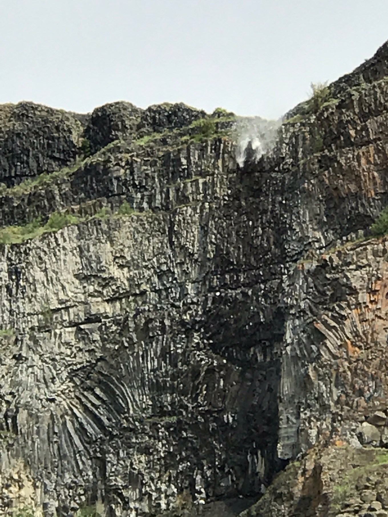 Amazingly, we discovered some sun a few miles down the road with a waterfall blown backwards by the wind.