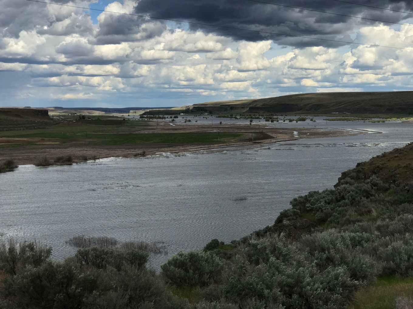 The many rainstorms this spring resulted in flooding in fields and roads and flowing off the edge of the grand coulee. We found some of those flooded roads: