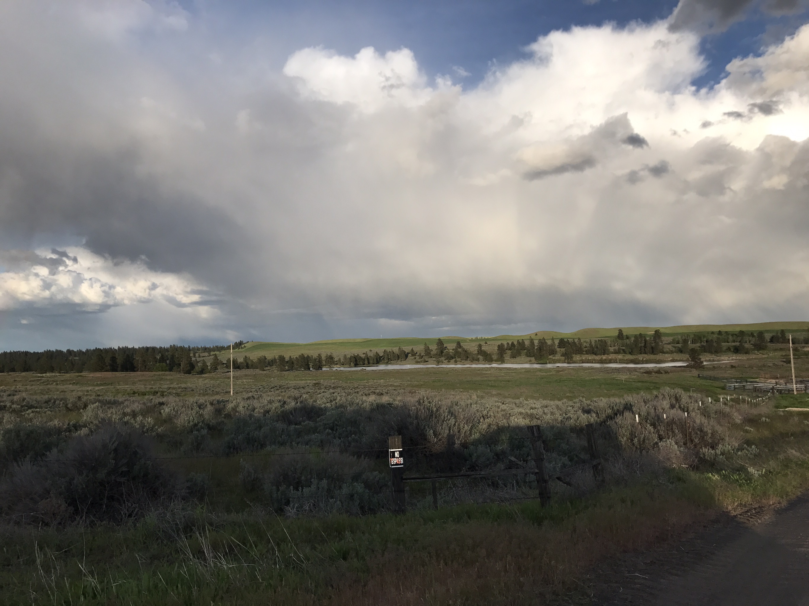 A view of the big sky over sagebrush, a lake, the forest, and wheat fields— all in one view: