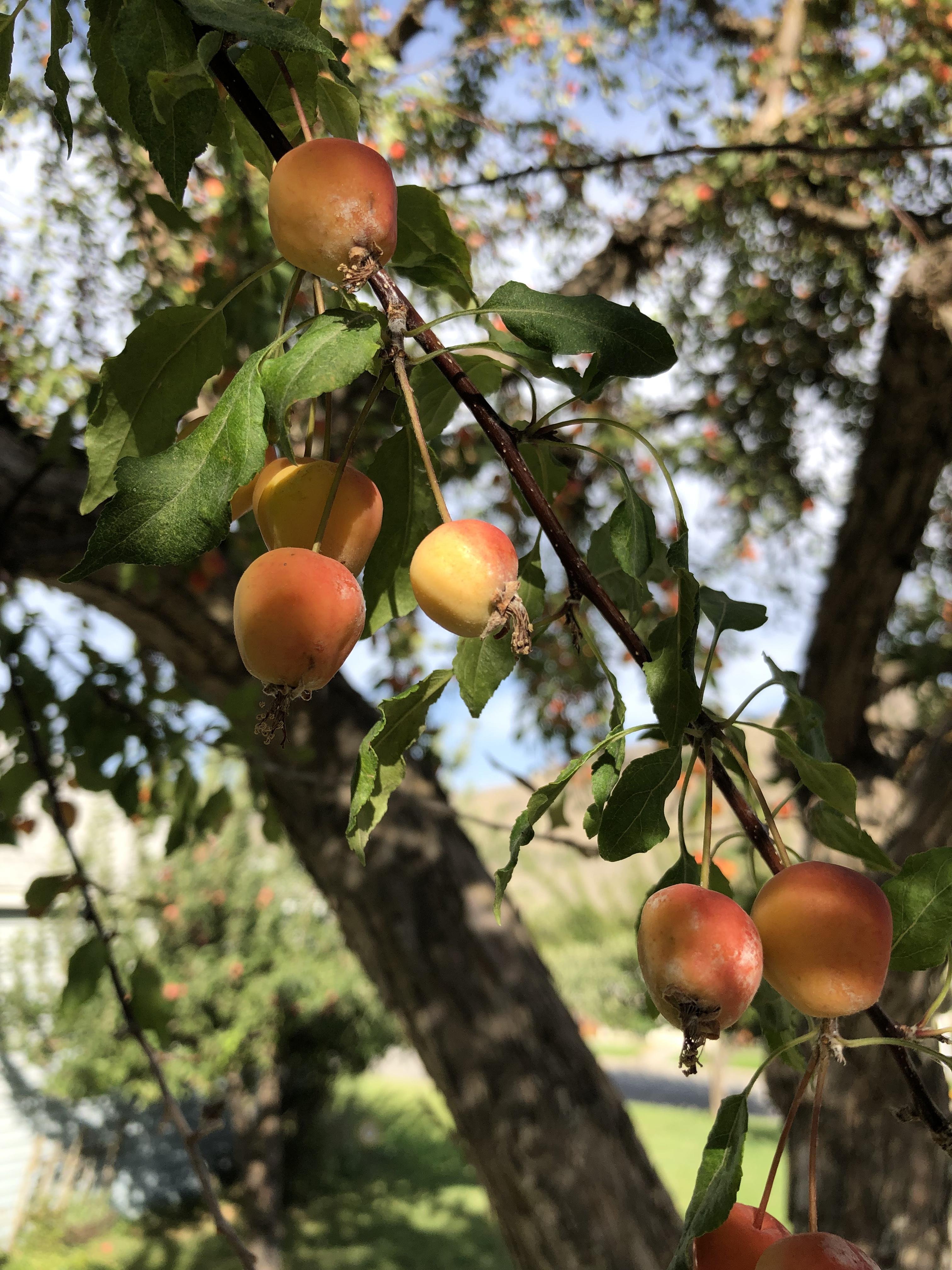 Love the play of sun and shadow on the red and orange of autumn crab apples.