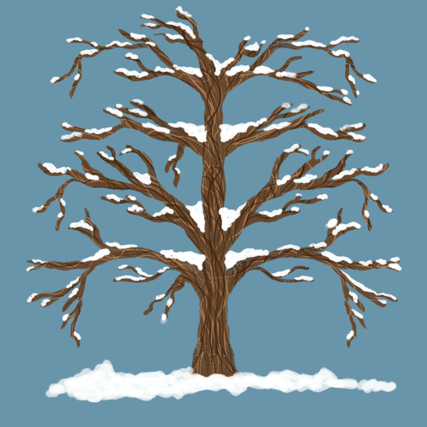 This is a revised tree– I added the cardinal, falling snow, and fog.