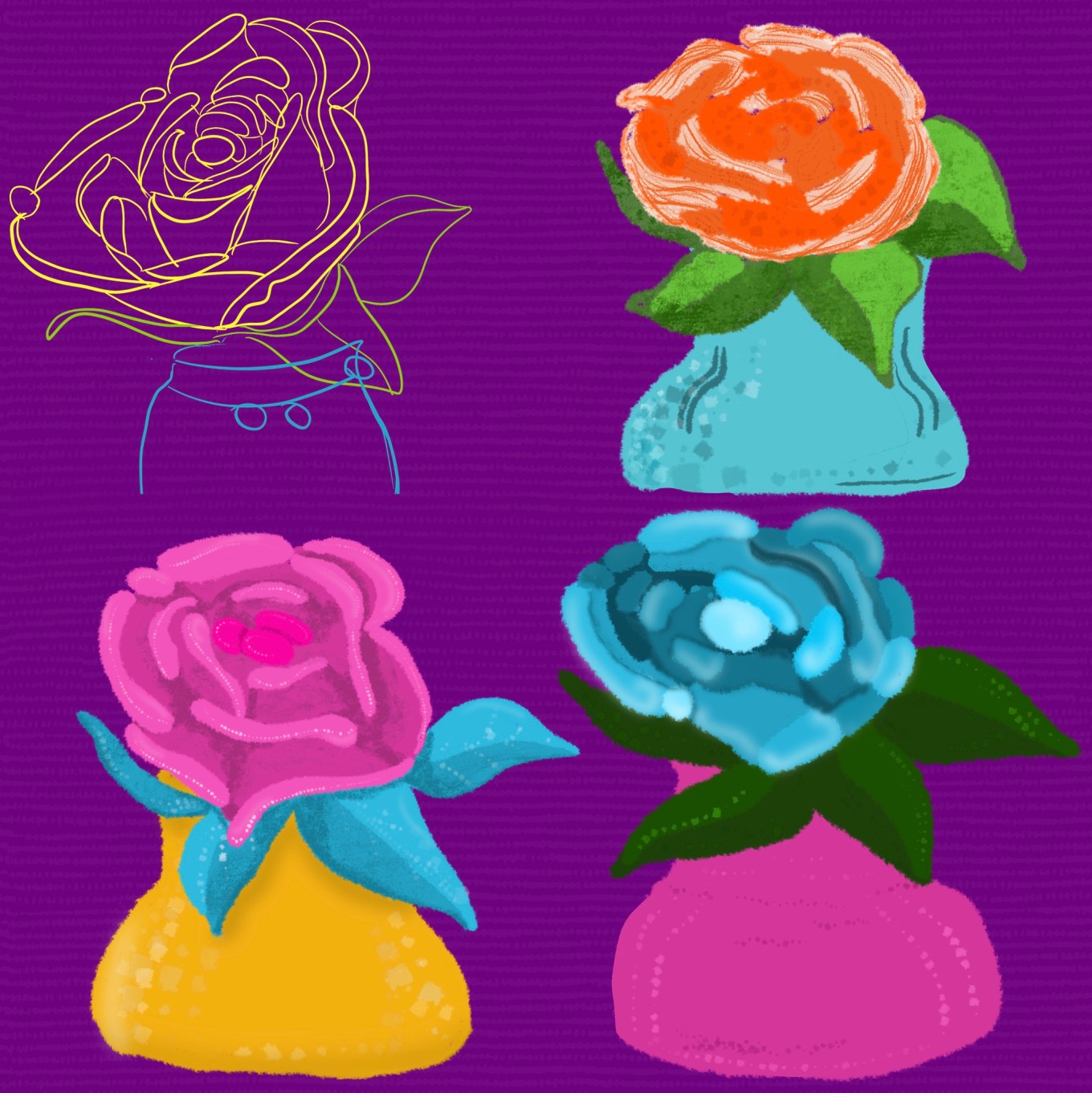 I tried to use the highlights and shadows of the petals for the shapes in the rose so I could abstractly fill in the lights and shadows.