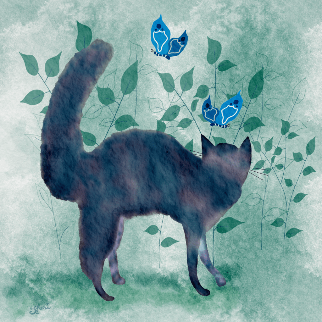 Cat Life 3: A surprise kaleidoscope of butterflies startles the cat’s walk through the bushes.