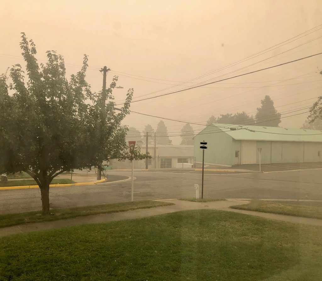 Still smokey in the sky. Dangerous particles lower visibility and cause breathing problems. It’s recommended to stay inside; while outside, where a good mask– N95 helps.