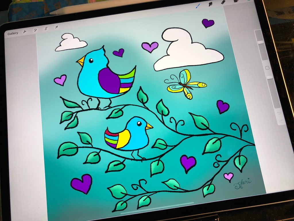 Perhaps later today after a short hike in the sunshine I will create analog art with markers and watercolors. But, for me and my shakey hands, the iPad and its pencil where I can “undo” allows me to create art I like…
