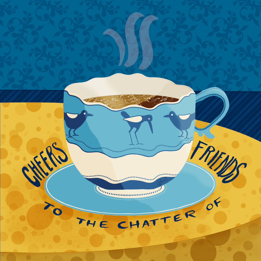 #Proctober’s Inktober prompt is “Bird.” And I’m on mission to create a pattern with mugs, so enjoy another friendship cup of coffee with me: