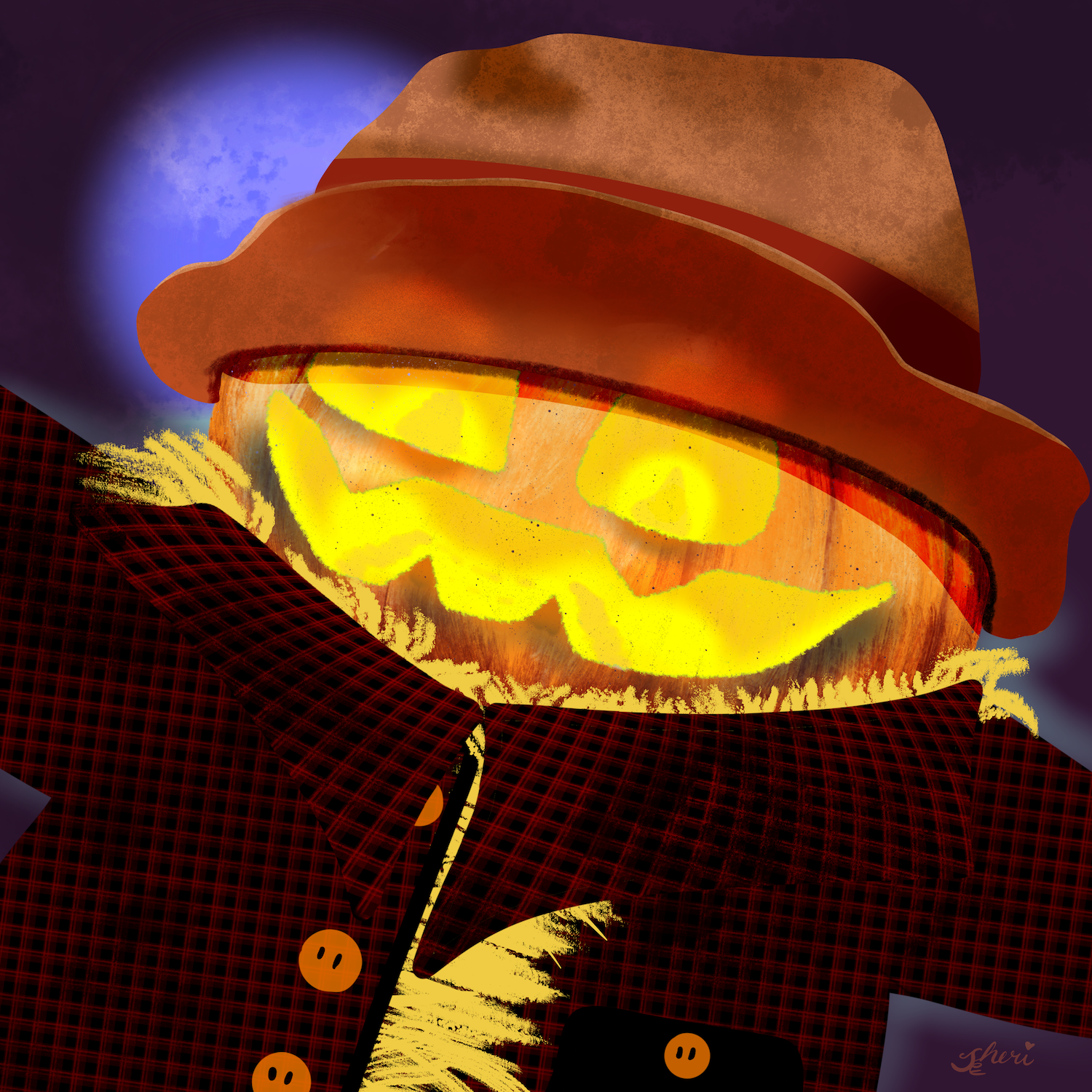 #Proctober’s Inktober prompt was “scarecrow,” which was Doodle Institute prompt a while ago and shared here. So, I decided to zoom in on the scary face with the moon behind and eyes glowing. Isn’t it fun? I think so!