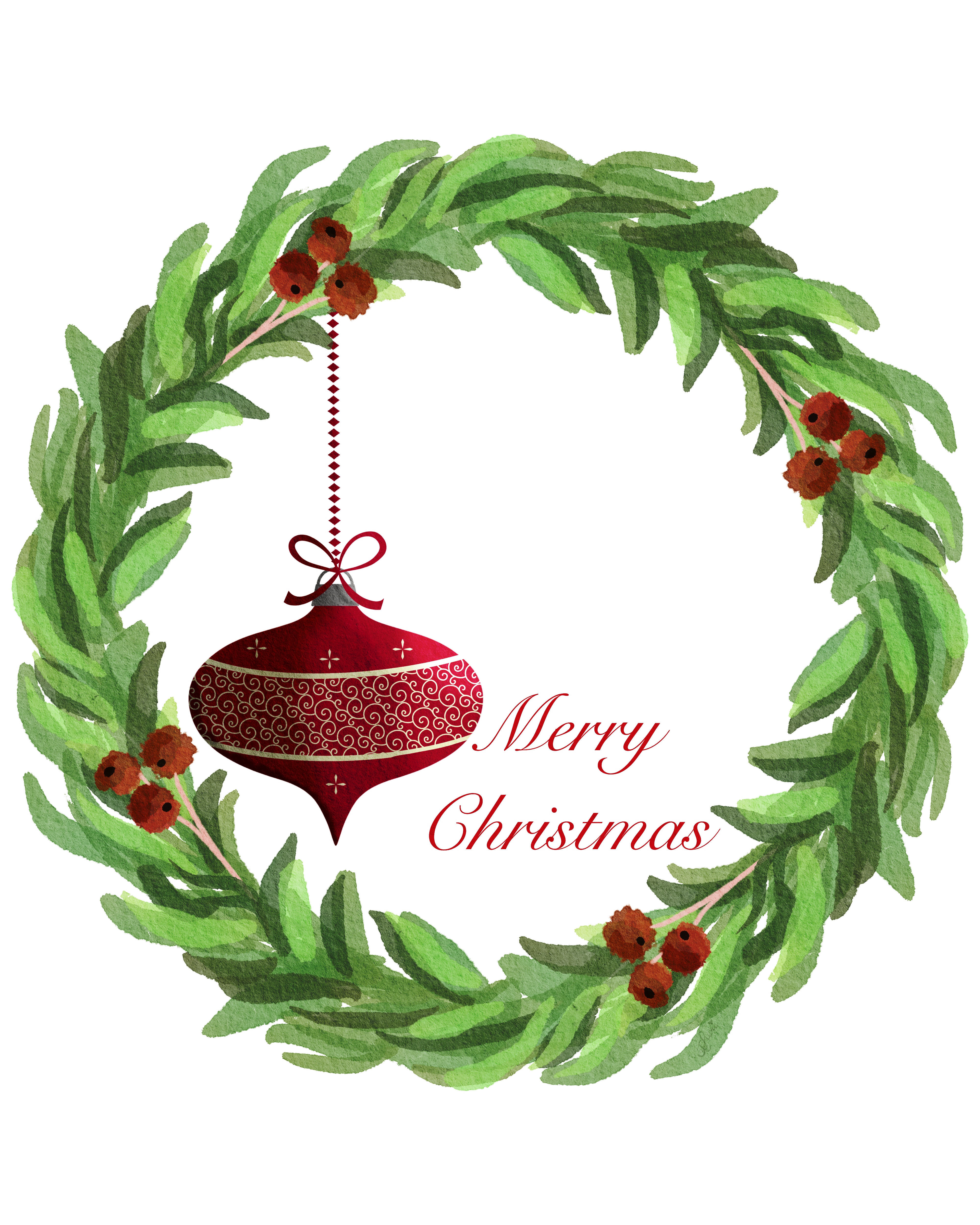 For my wreath, I added a few leaves over the berry branches to cover them up, and added a vintage ornament and “Merry Christmas.”