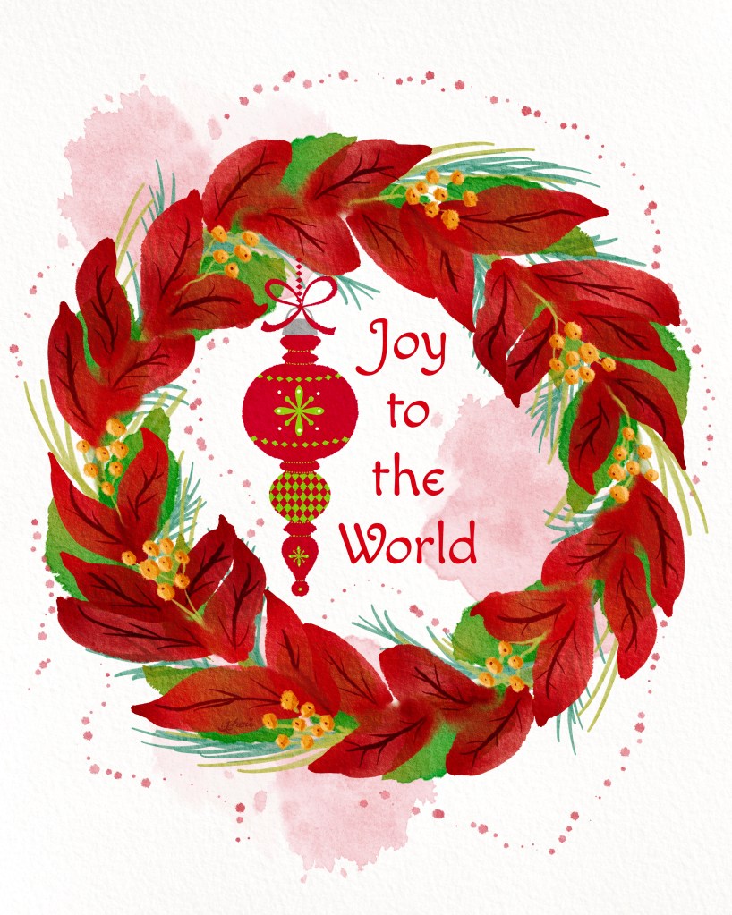 Another watercolor wreath and ornament for this year’s collection. I might order it as a coaster, but I really like the ornaments, like the two previous wreaths I created and ordered: Green Wreath, Blue Wreath.