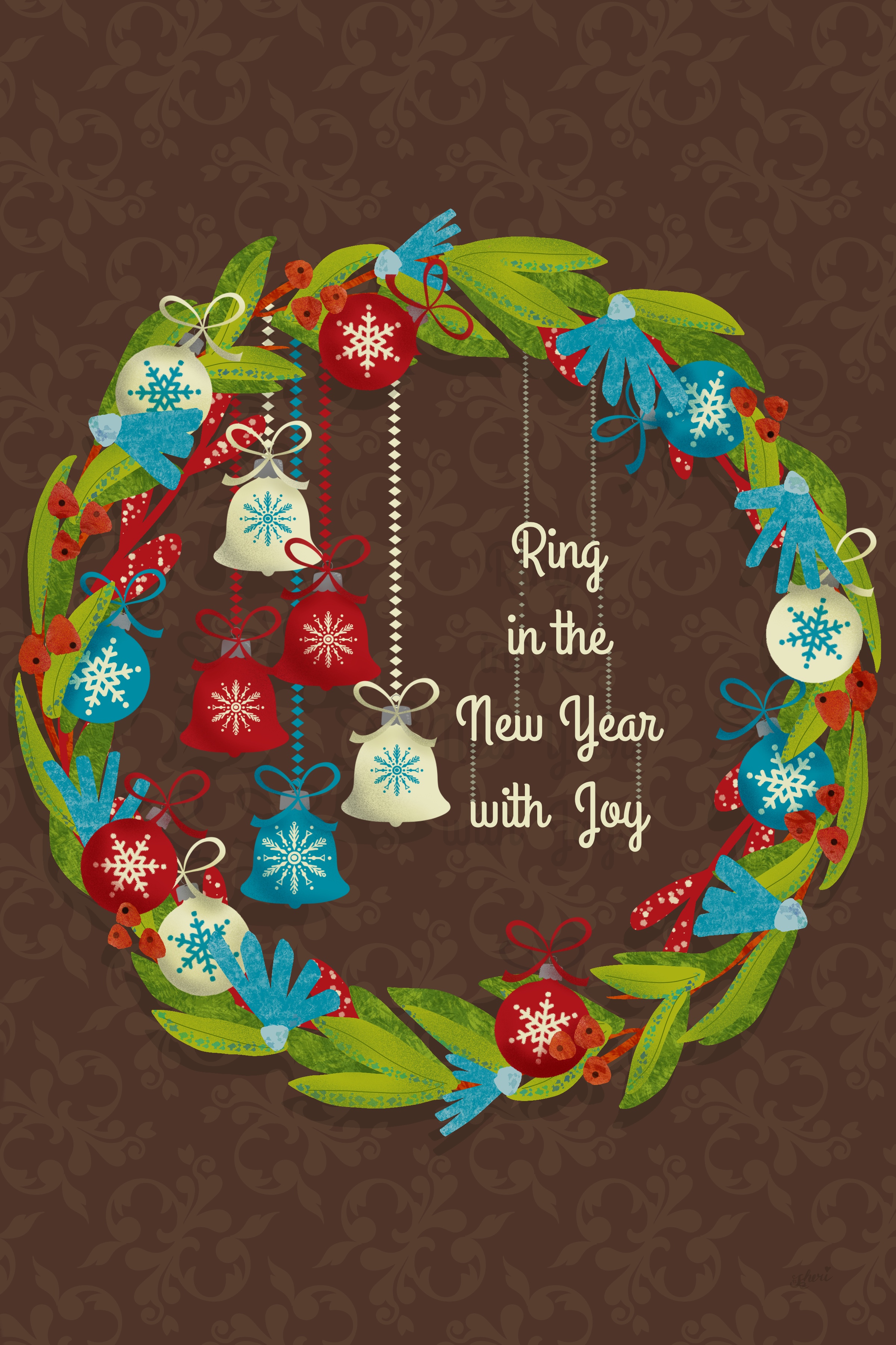 It’s getting too close to Christmas to illustrate ornaments for that holiday, so I’ve switched gears for the new year, and I’m still having fun with wreaths.