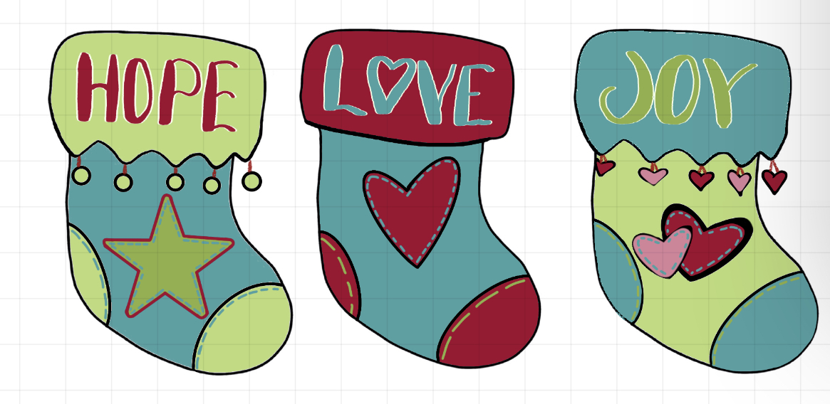 A while ago I drew these cute holiday stockings since Scott and I don’t display ours anymore, since it’s just us at home. I loved remembering all the years of adding stockings for kids and pets– and deciding what to put inside.