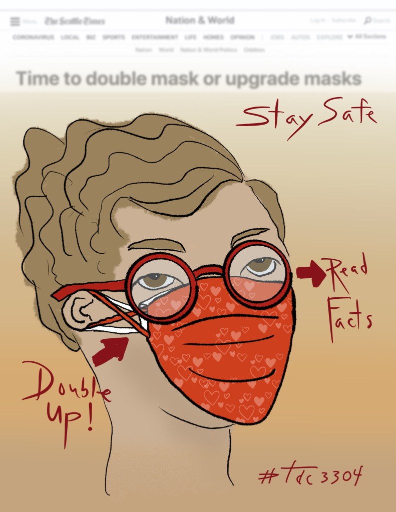 The Daily Create #tdc3304 today asked us to create a reimagined front page for a newspaper based on this idea from the Guardian. One news today is explaining that we can protect ourselves better from the Coronavirus by wearing two masks.