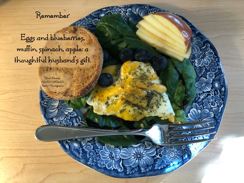 Today, and almost every day, I am fortunate to enjoy breakfast cooked by my husband. It’s something to remember and appreciate, and I do, every day.