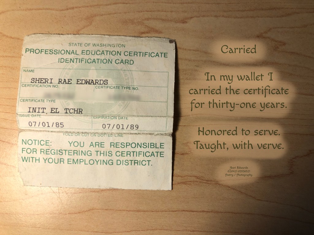 Today I found what I had carried in my wallet for 31 years, the very first teacher certificate from 1985. A career of helping kids succeed in their world– not my preconceived world, but their world and hopes, a journey of teaching and learning together.