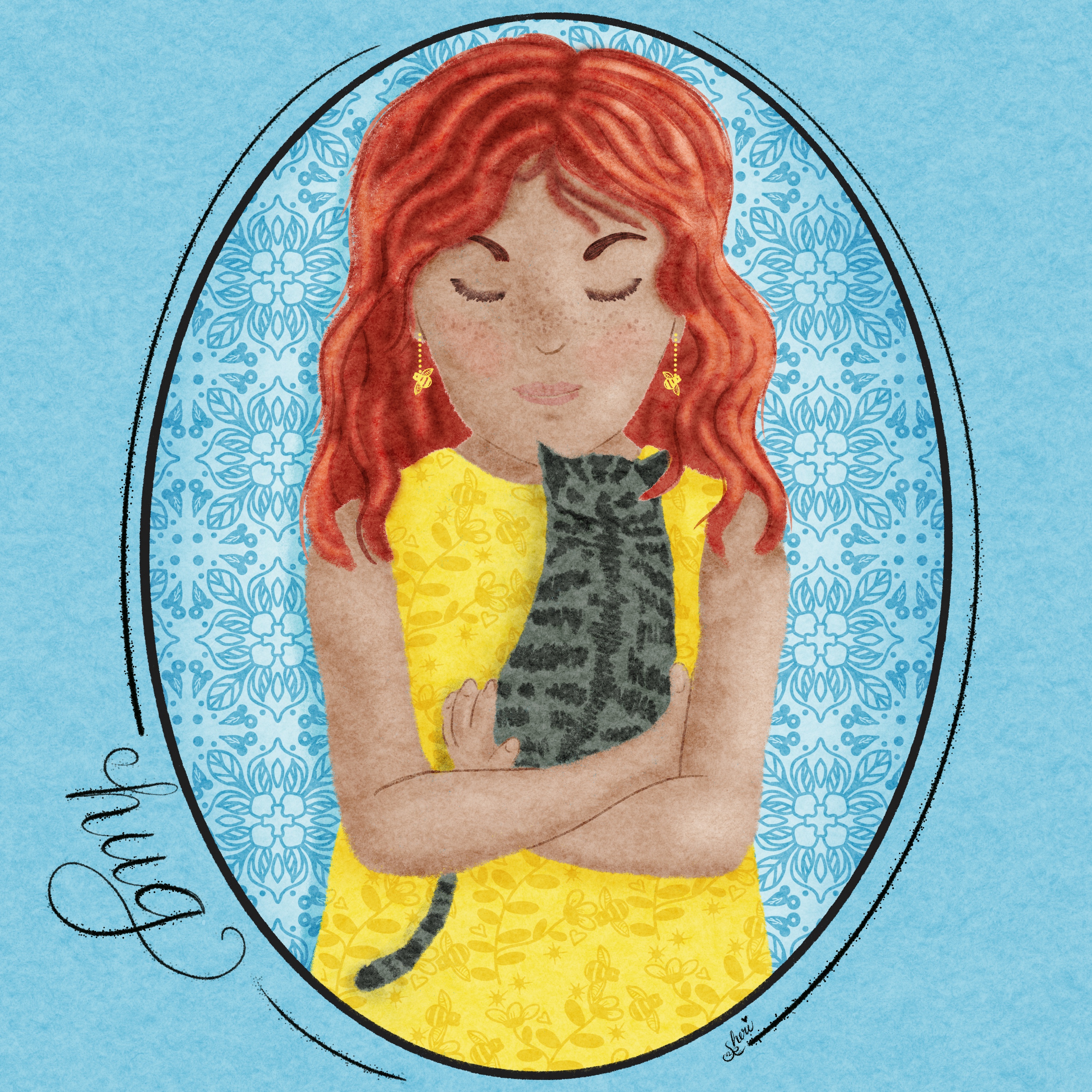So getting some strategies and processes to draw better characters was a bonus for me. And, it allowed me to draw the little red-haired girl hugging her kitten. Very fun.