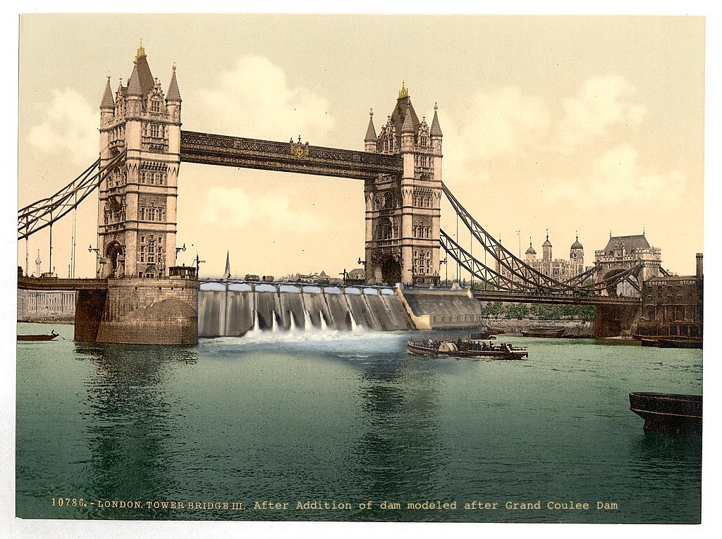 I chose to take what I see out my living room window — the Grand Coulee Dam — a place it as part of a newly reconstructed London Tower Bridge on the Thames.