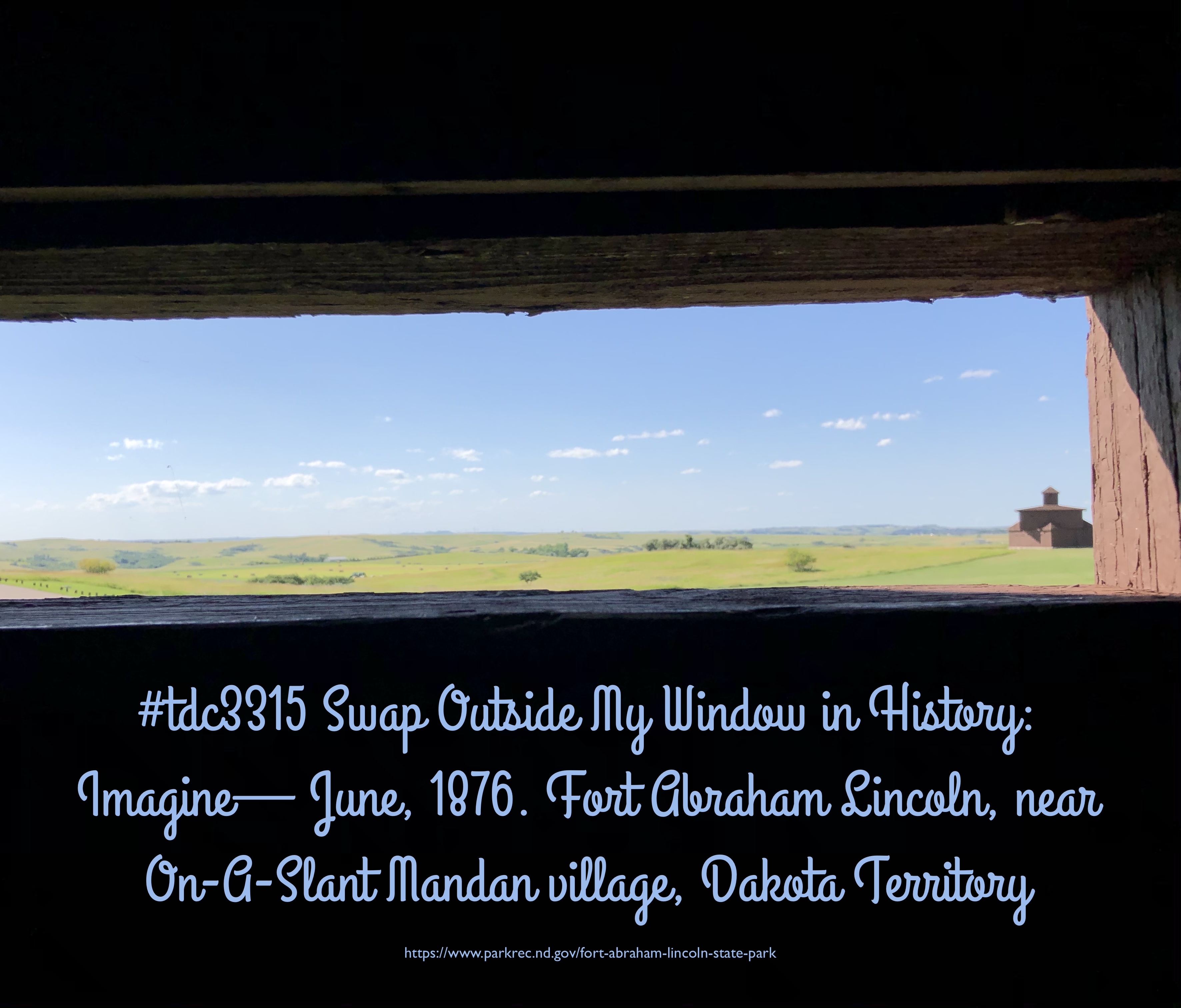 Today’s Daily Create [ @ds106dc #tdc3315 ] is to swap what you see outside your window. I chose to add to that, and do a bit of history: Outside the window of Fort Abraham Lincoln in Dakota Territory in June, 1876 before the Battle of the Little Big Horn.