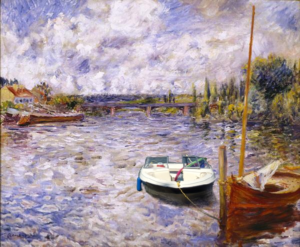 I chose Renoir’s The Seine at Chatou DMA from 1874 where I placed our boat next to his.