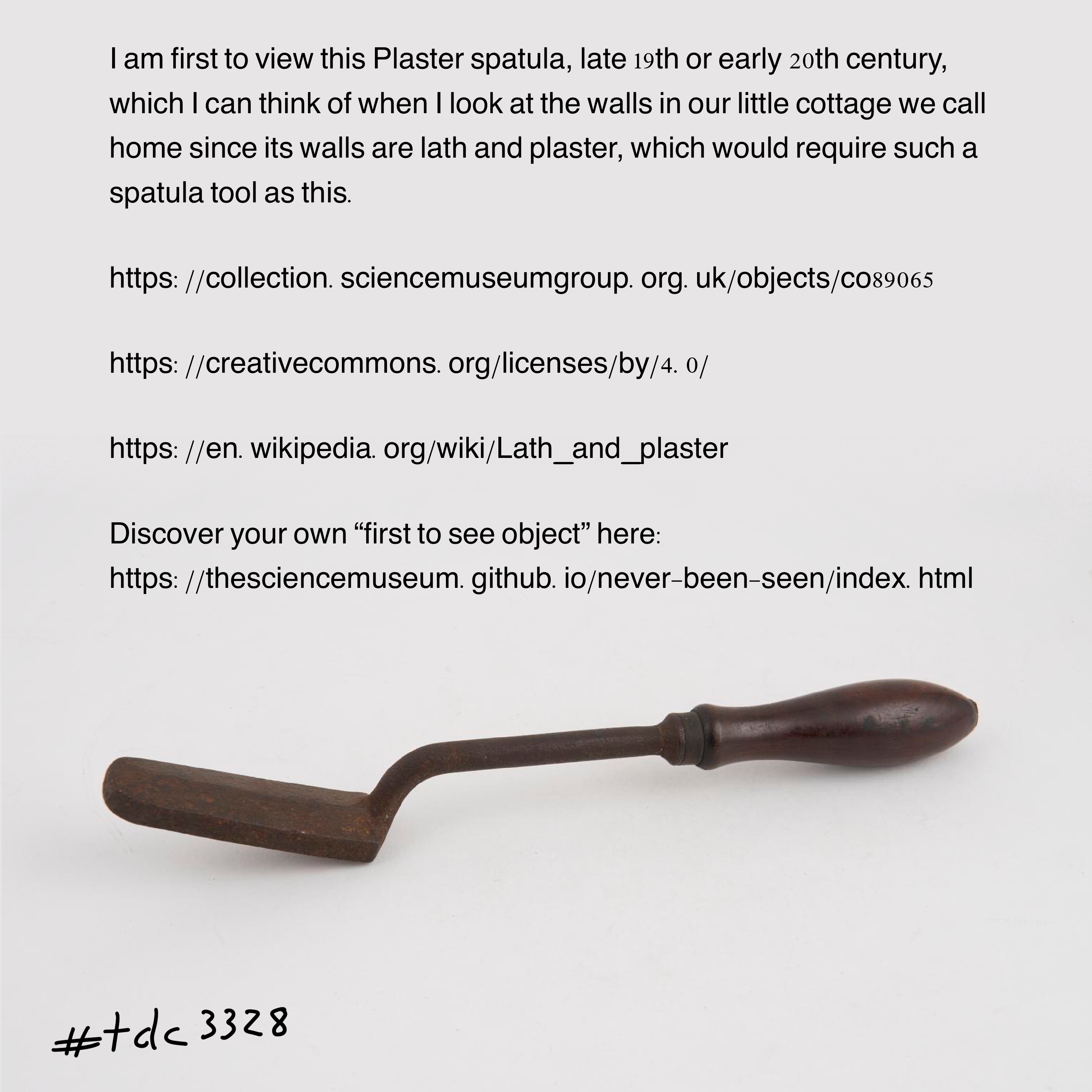 I am first to view this plaster spatula, late 19th or early 20th century, which I can think of when I look at the walls in our little cottage we call home since its walls are lath and plaster, which would require such a spatula tool as this.