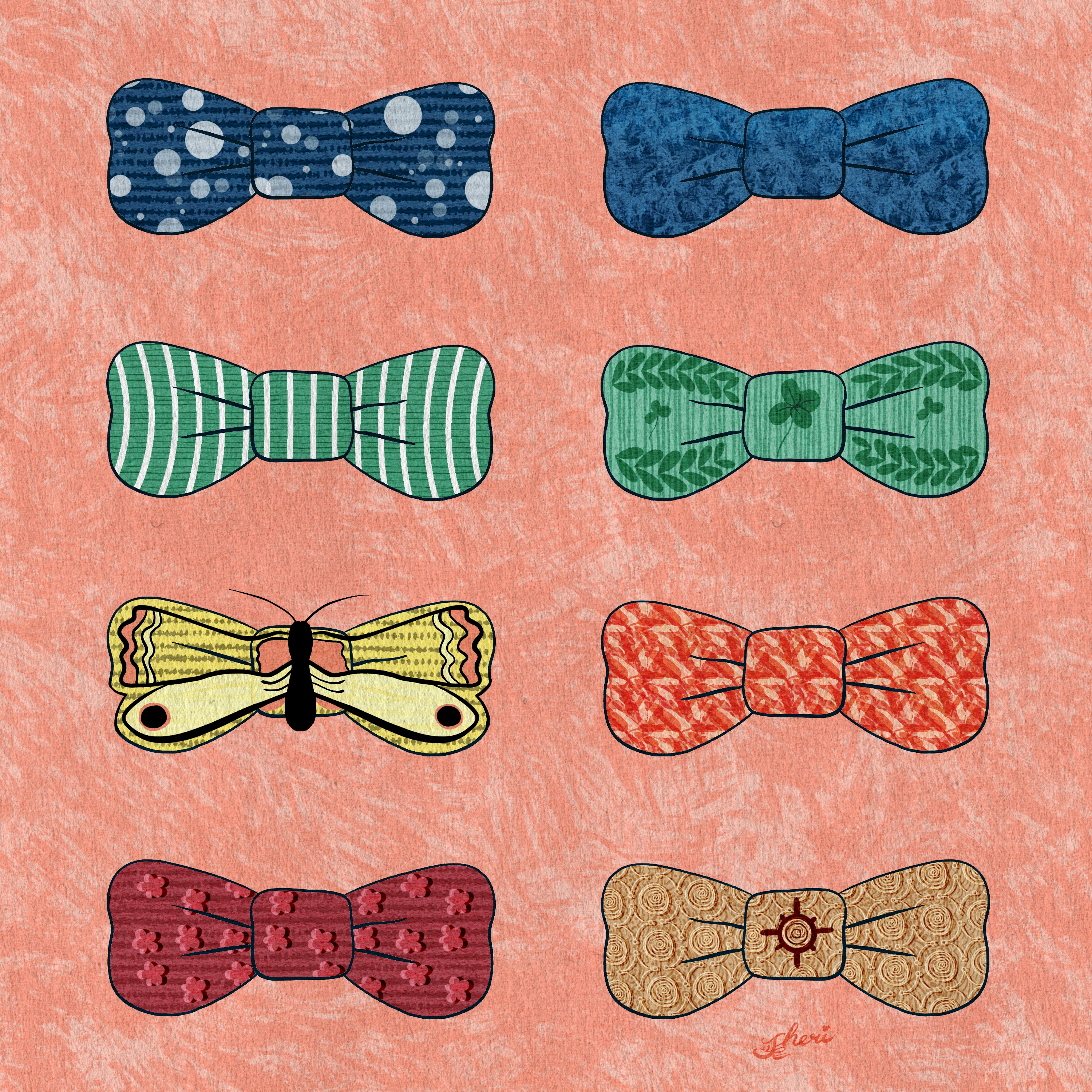 What is shaped like a bow tie? A butterfly! So much chance to try that idea arrived sooner than expected. So fun– and I was able to practice my texture brushes as well.