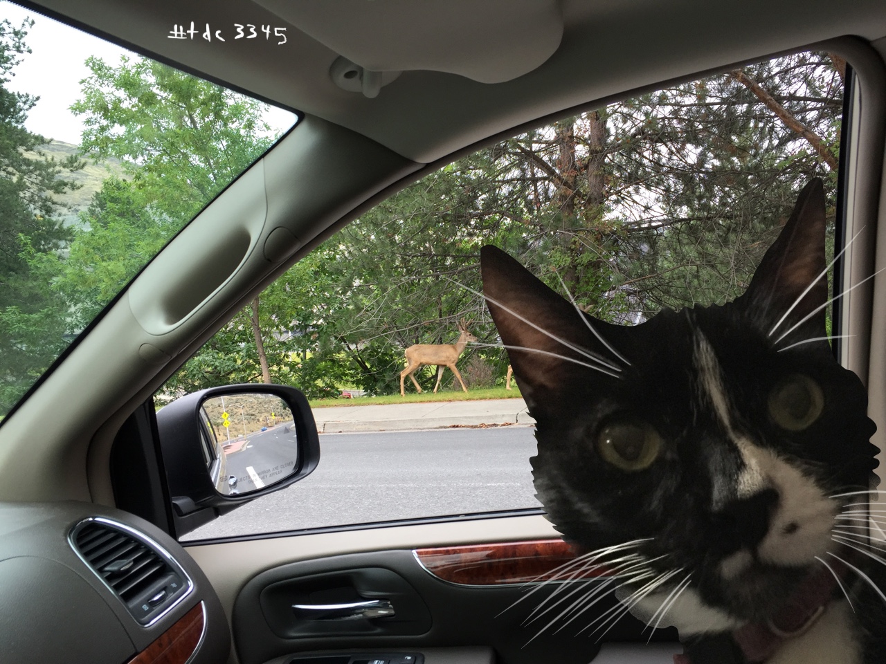 Here’s my cat borrowing the car to chase down those wild animals roaming the town.