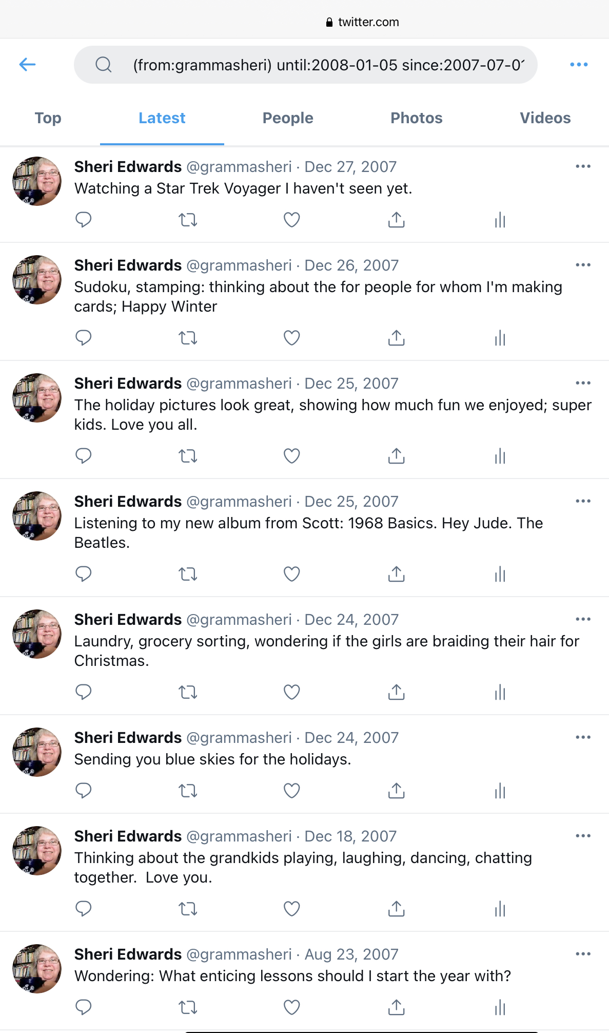 Today’s Daily Create [ @ds106dc #tdc3350] is to find my first tweet. The post links you to how, should you want to investigate your own.