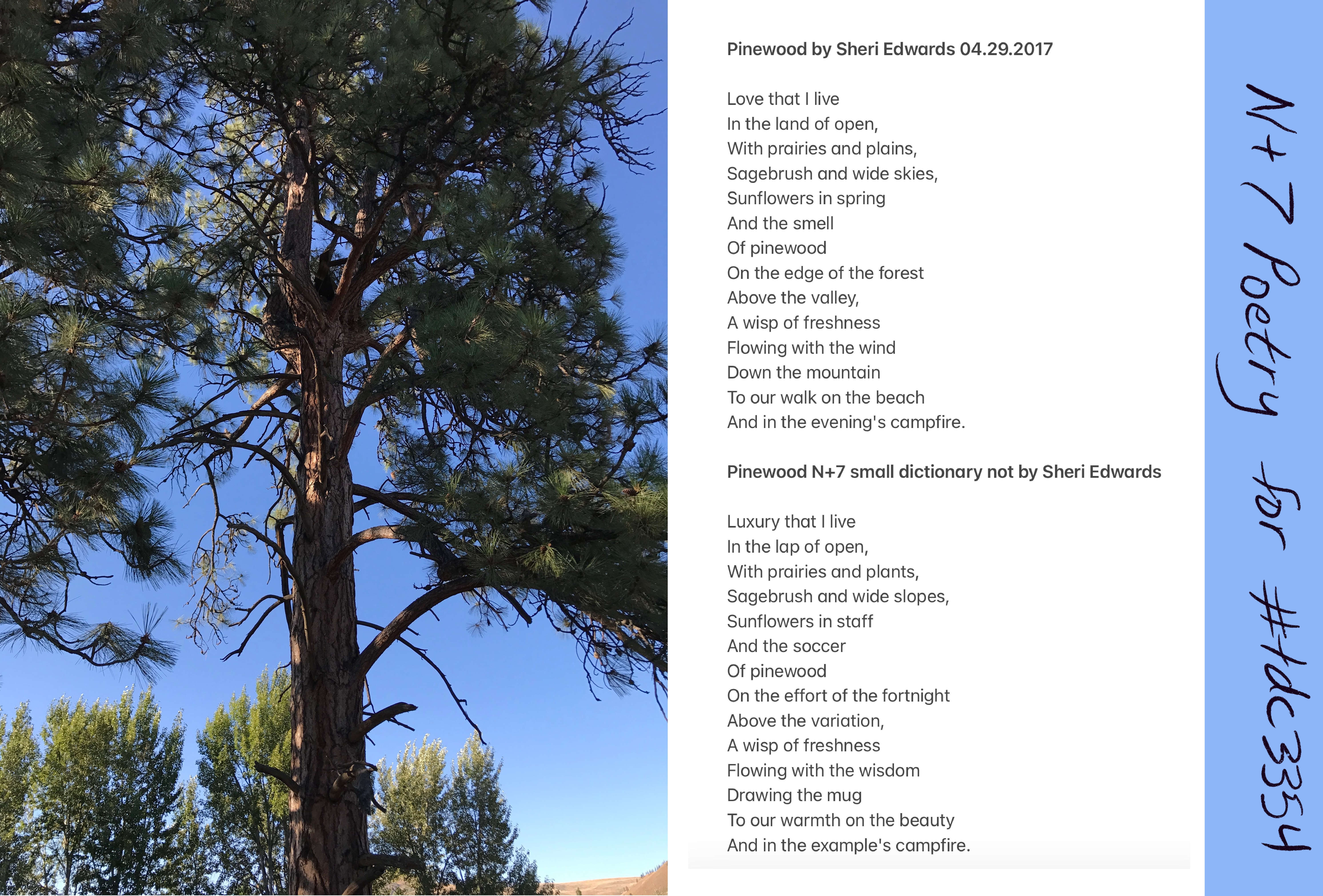 Now, who has a dictionary laying around anymore? Certainly not me. Fortunately, my friend Sarah wrote a blog post about this Daily Create in 2018 which included a link to an N+7 generator, thus saving the day!