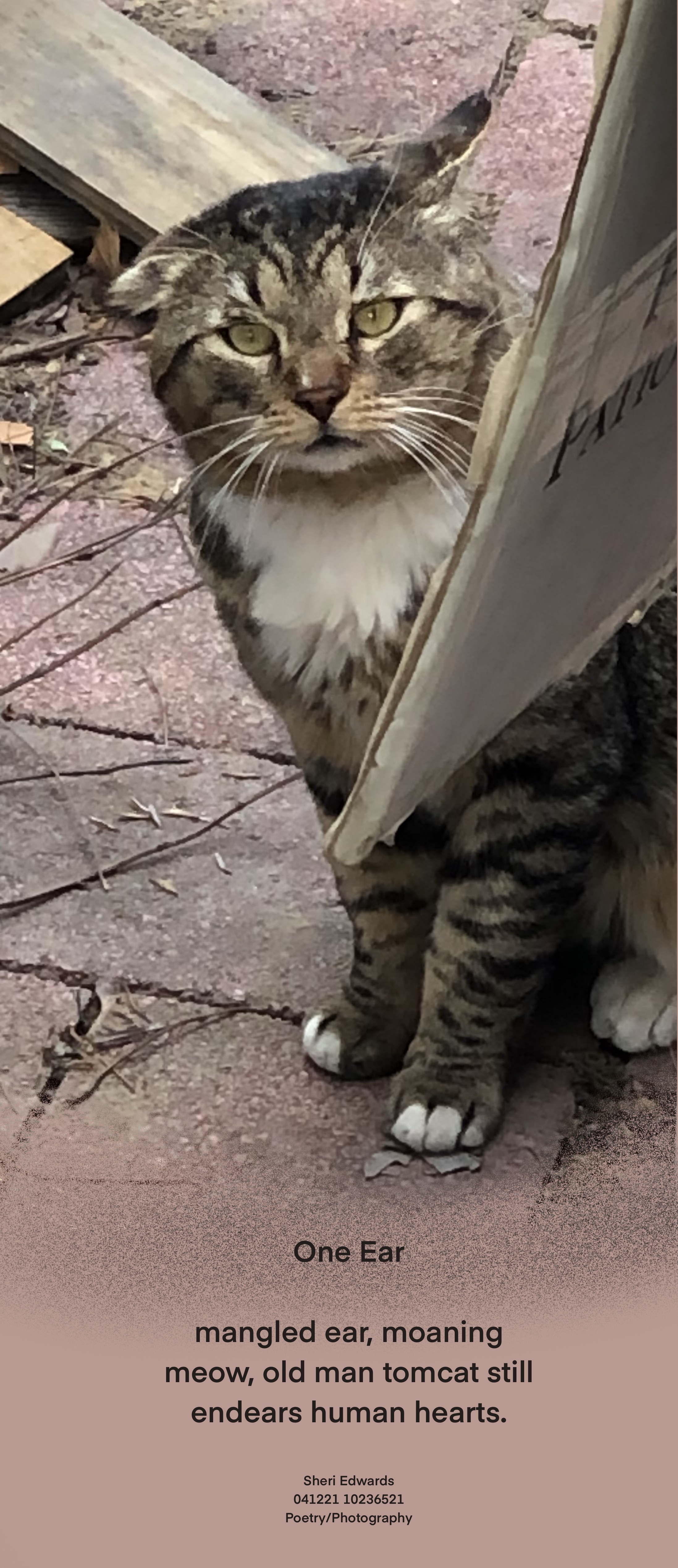 Every day, a photograph, a poem. Today and yesterday I could snap a photo of the tomcat in the neighborhood who is training Itty Bitty to be nice. He’s old and smart enough to know a good thing, so, since we started feeding him, he’s been “friends” with our cat and chases off the neighbor’s cats who pick on our cat, the youngest one in the neighborhood.