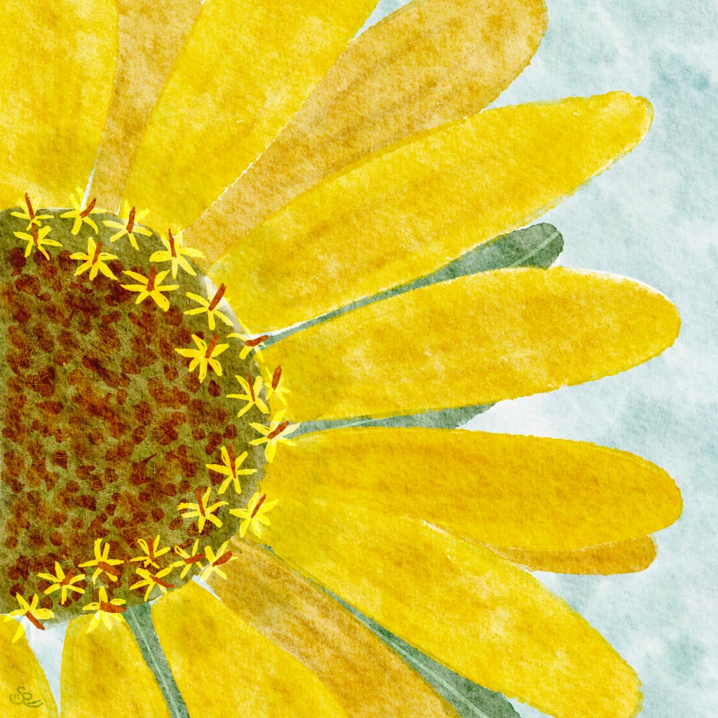 Today the prompt is enlarge, and I tried a watercolor of one of my sunflower photos, enlarged.