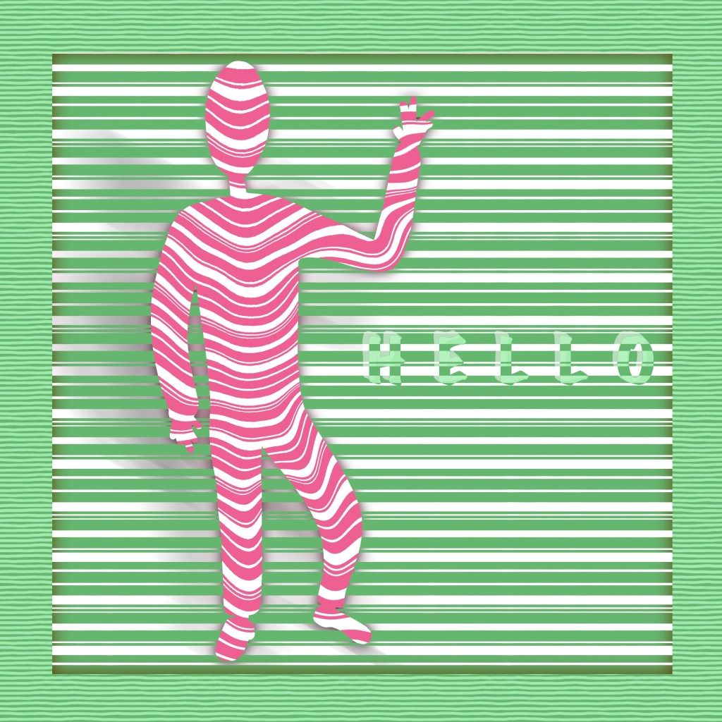 Today the prompt is horizontal, so I created a pop art style “hello” greeting in horizontal pink and green stripes.