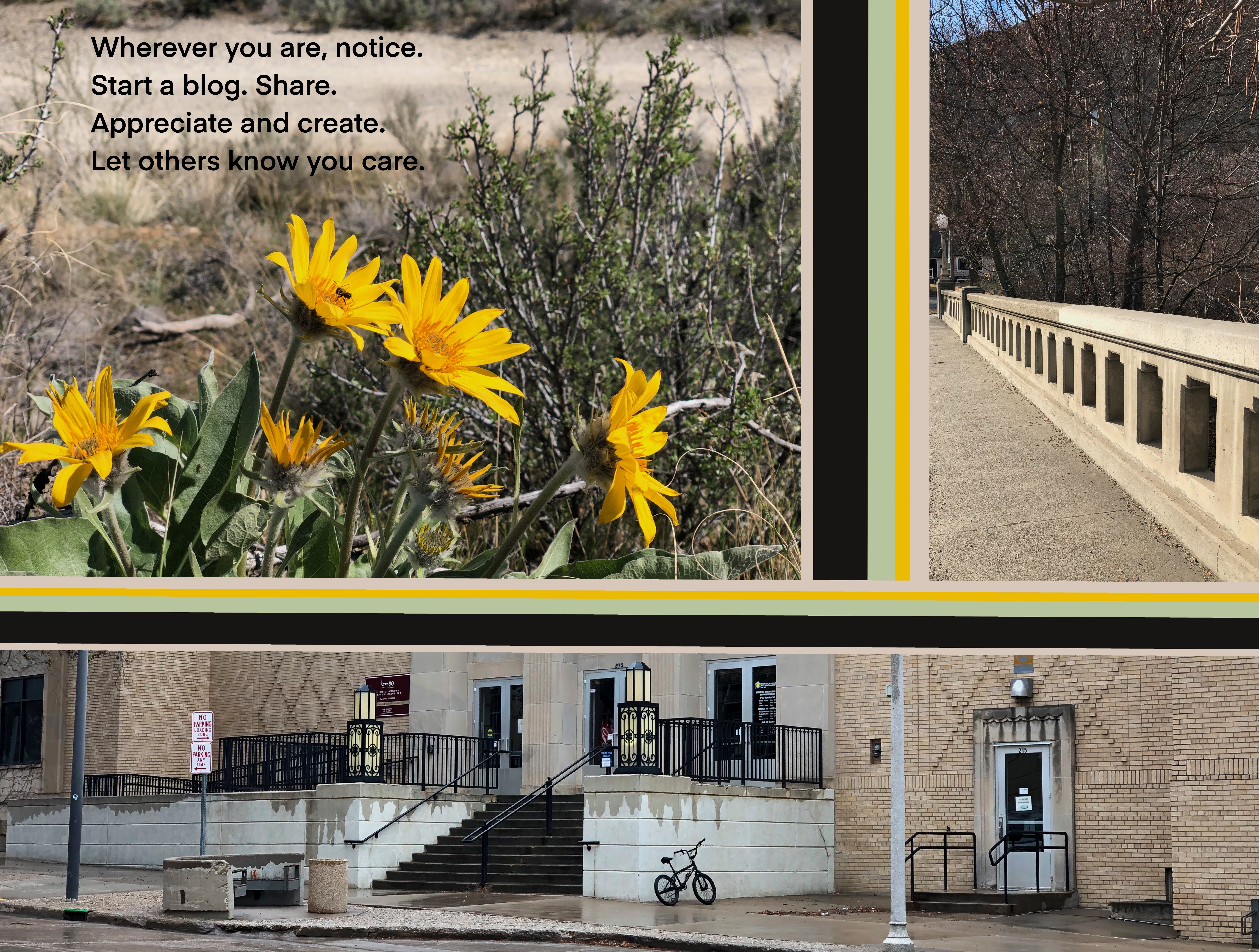Share what you notice– a blog is a great way to share. And, appreciate something or someone every day; create a bit every day– a nod to a stranger, a doodle in the margins of a book, an appreciation of what was noticed. Let others know you care.