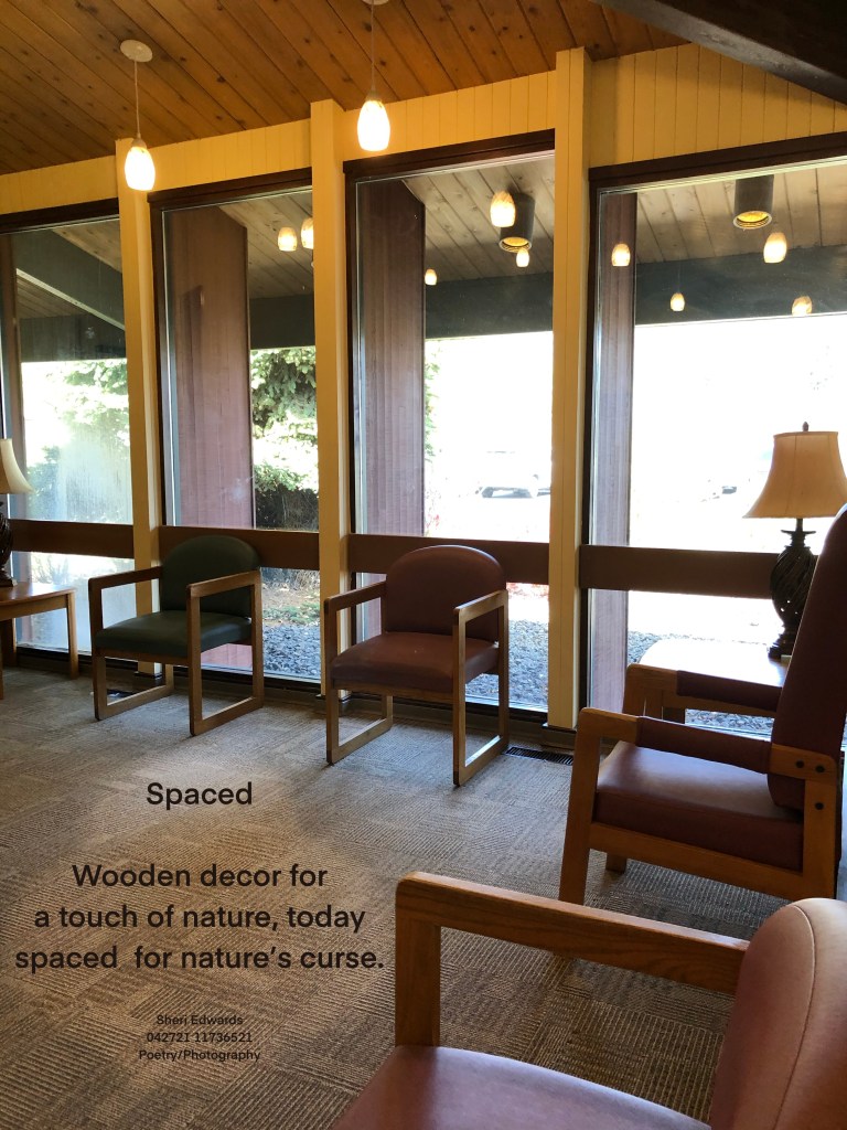 Every day, a photograph, a poem. Today my appointment was held at the old clinic. You can see that even then at that time the clinic aesthetics include natural wood and wide windows in the waiting room, with landscaping outside. A pleasant place to wait while waiting for good or bad news or help.