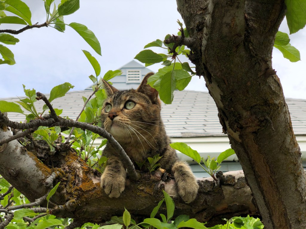 Those who know my cat know she loves to climb trees and probably would never be stuck, but I’ve got a great photo or two…