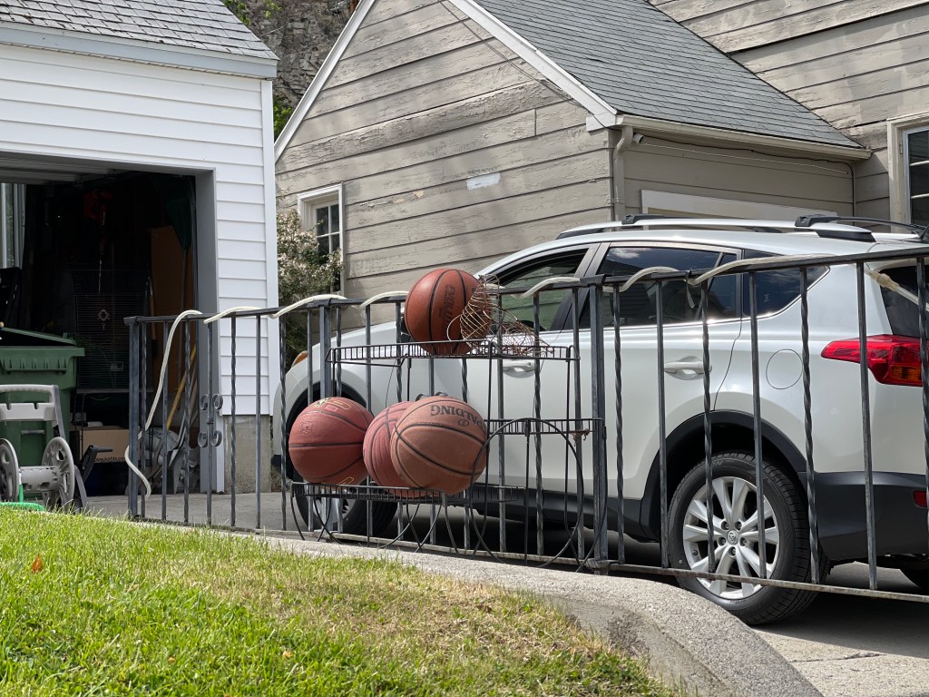 Another use for a plant stand…. and pinweed in the driveway because I like weeds.