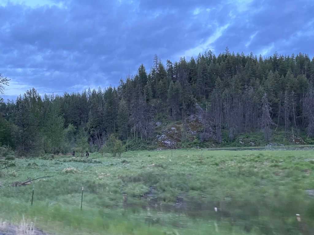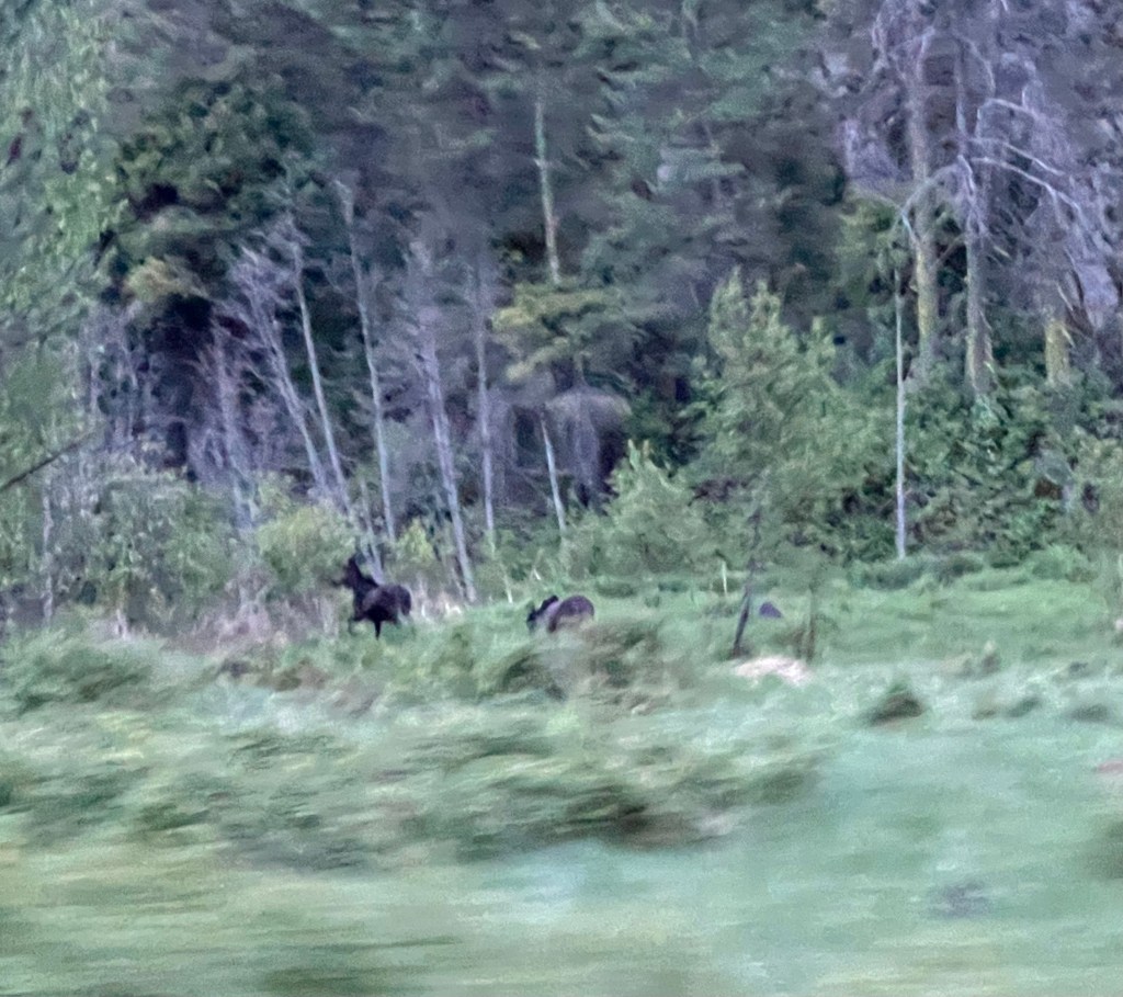 Fortunately, on our drive home in the late evening, we finally, after over thirty years here, saw the reputed moose living around the wetlands on the Desautel highway from Nespelem to Omak.