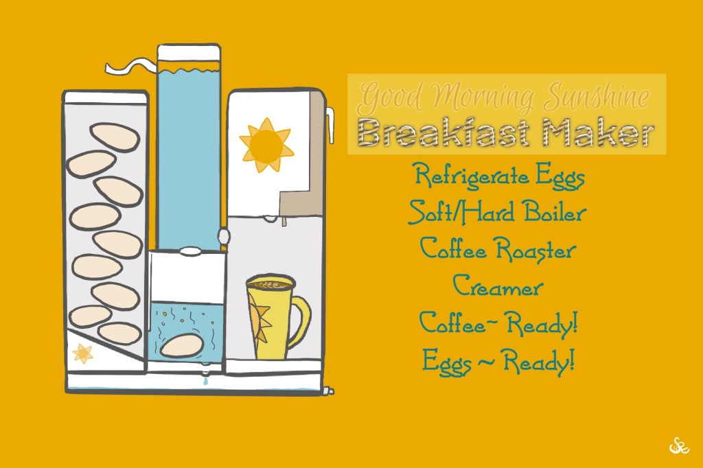 Today’s Daily Create [ @ds106dc #tdc3423] is to create a new combination appliance. This is one I need: my new appliance: Good Morning Sunshine Breakfast Maker.