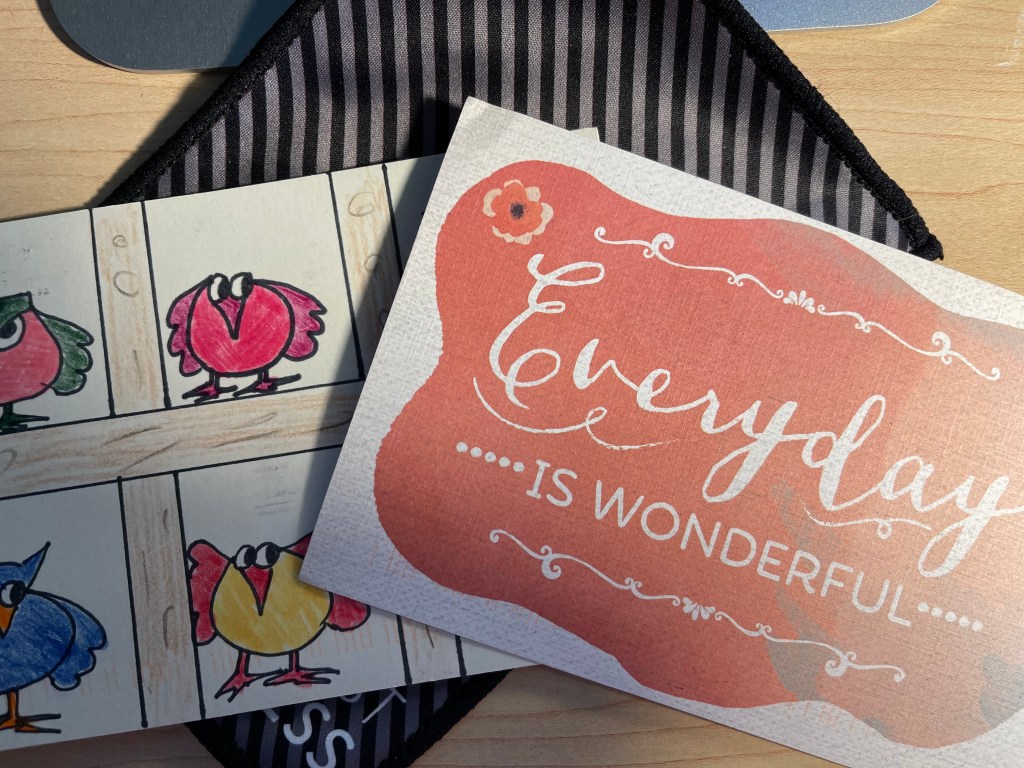 My photo includes a postcard received today and the day before from friends in Arizona and Scotland.