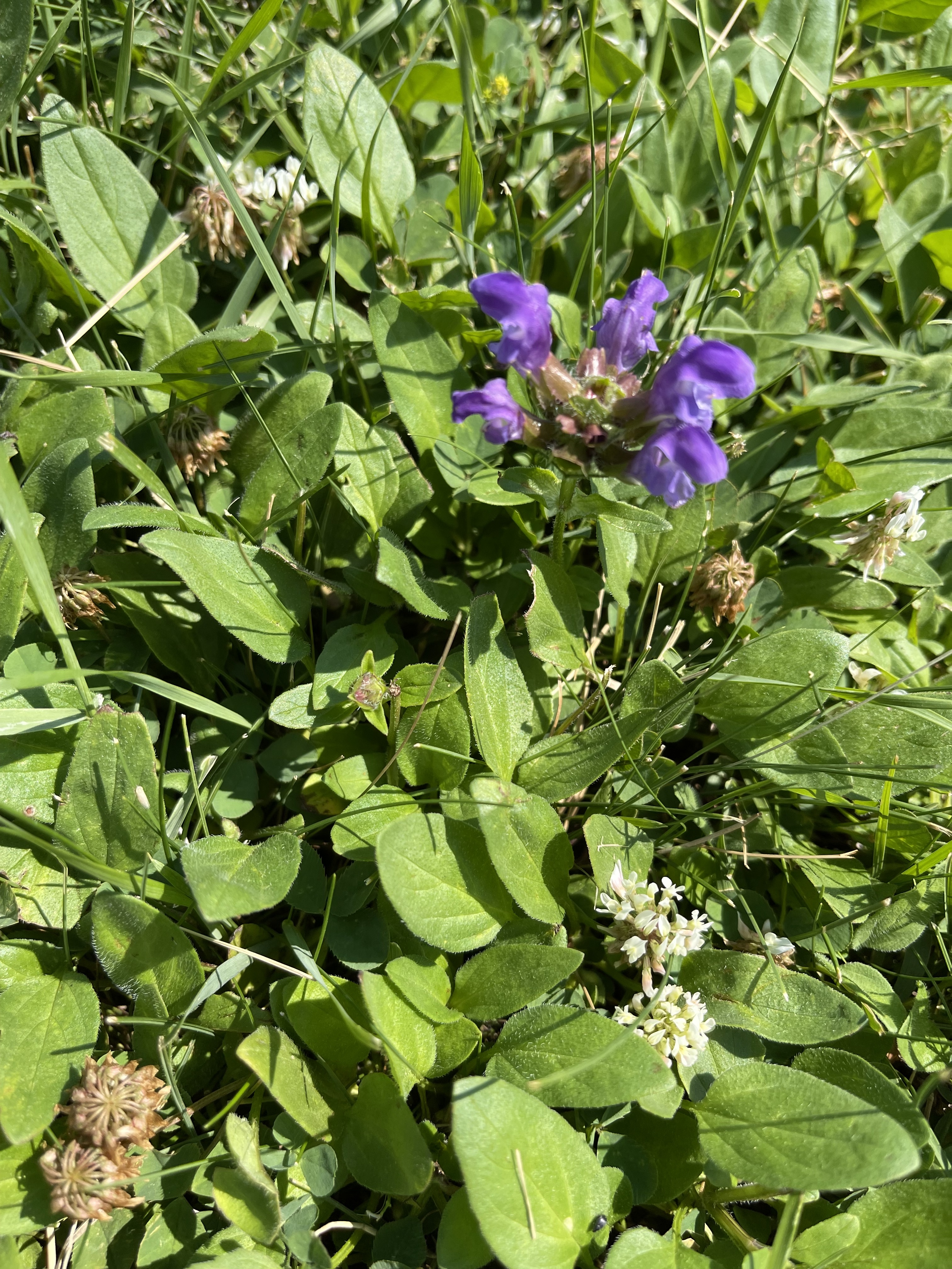 Update– Photo for today of one of the flowers growing in our lawn. I believe this purple flower is “lawn prunella,” but I’m not sure. At any rate, we let it grow– just mow over or around it.