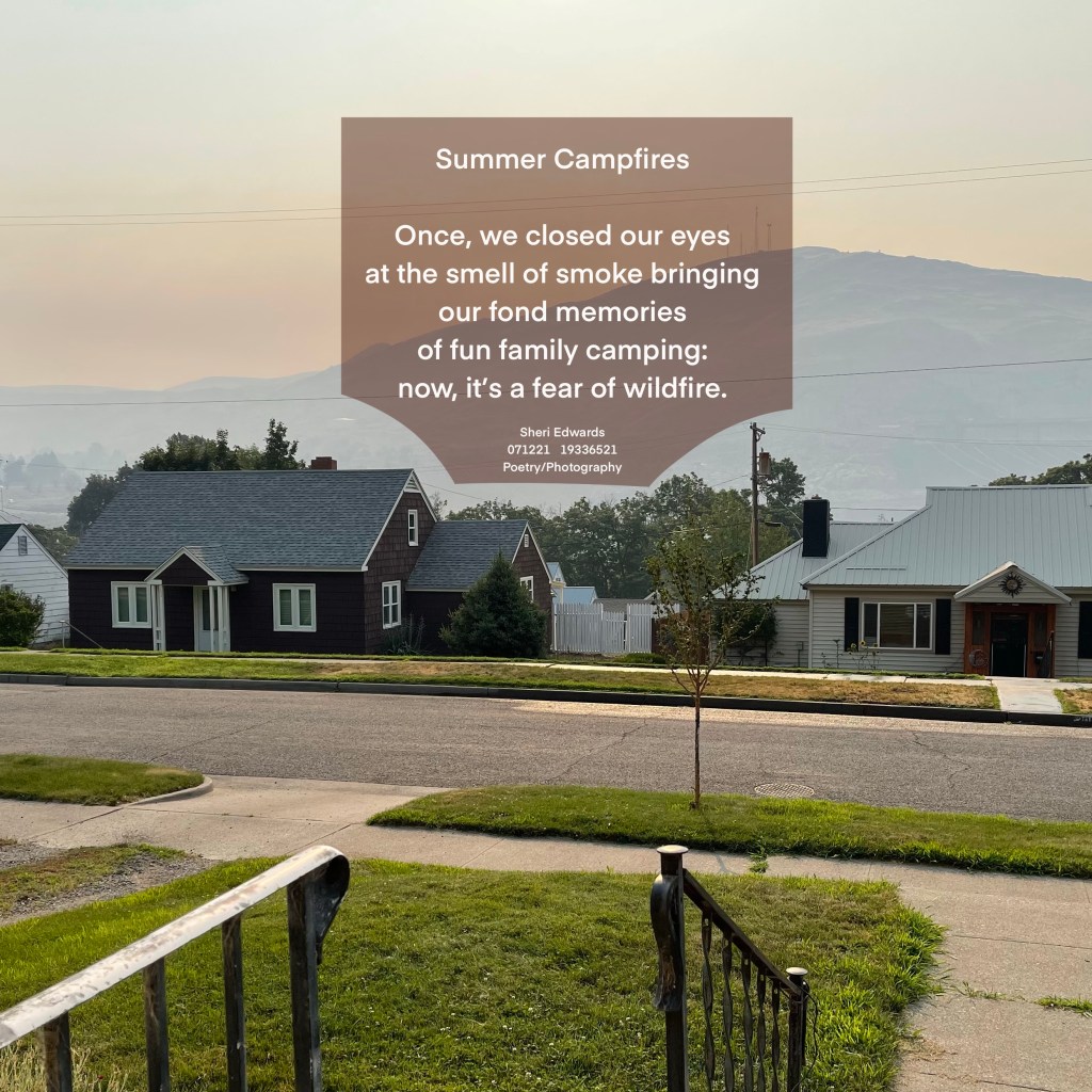 Last night the sky roared in shards of lightening thrown onto the parched land– the baked grasses, sage brush, and pine trees– sparking fires all around– three at the moment fourteen miles north of here, with many people forced to leave their homes under threat by the wildfires.