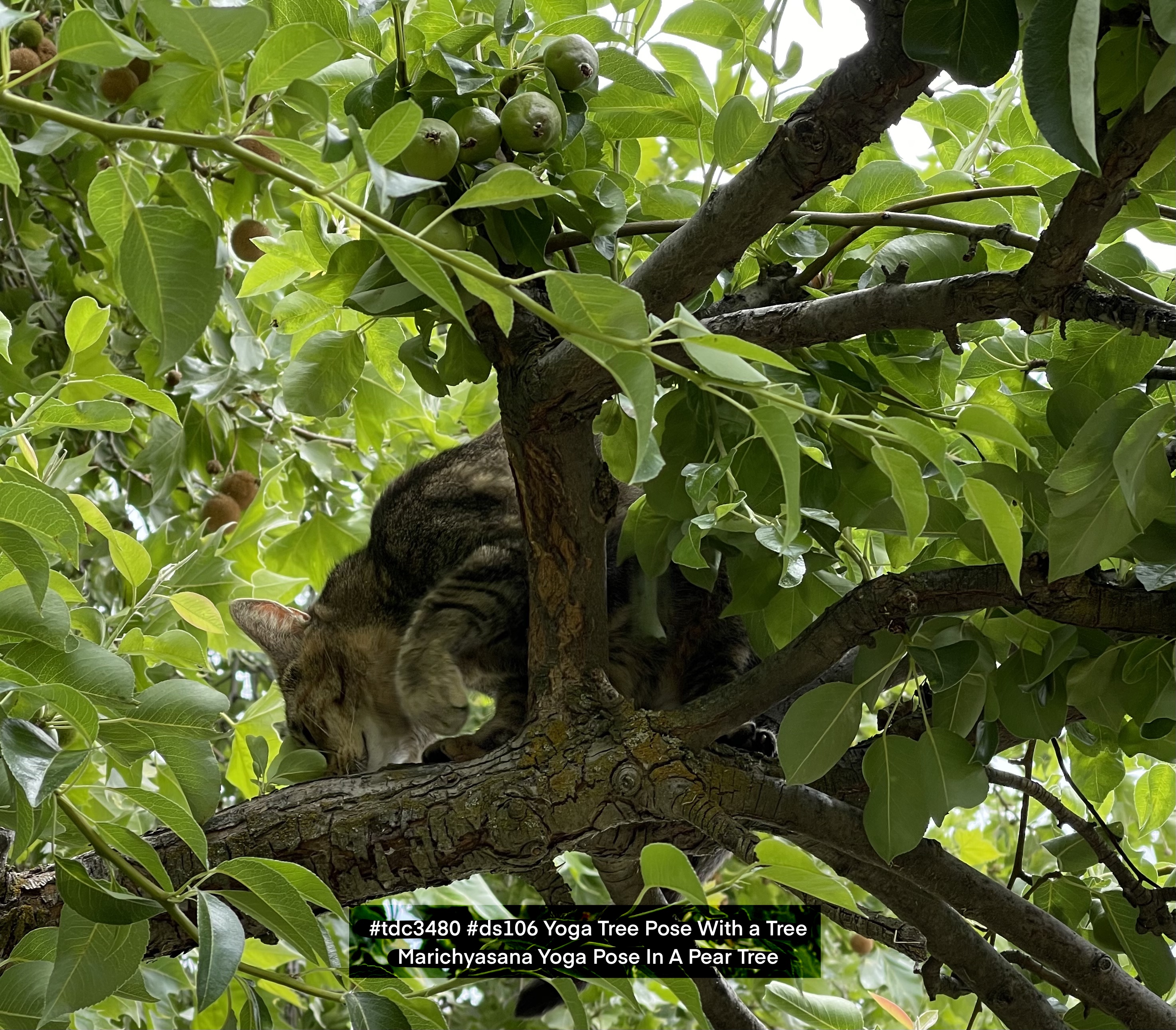 Today’s Daily Create [ @ds106dc #tdc3480 ] #tdc3480 #ds106 is a Yoga Pose With a Tree, so here is a Marichyasana Yoga Pose In A Pear Tree by Itty.