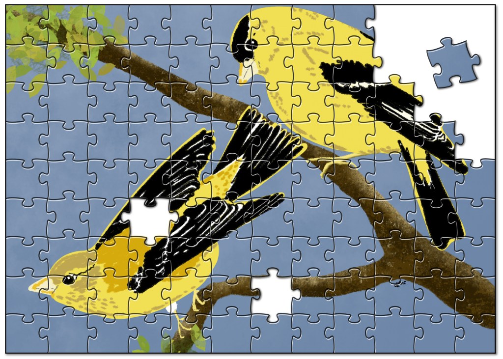 Today the prompt is puzzle, so try this puzzle with it’s cover photo. Sorry, it’s missing a few pieces. I created the puzzle with Big Huge Labs Jigsaw Puzzle Maker using my “cover” illustration: