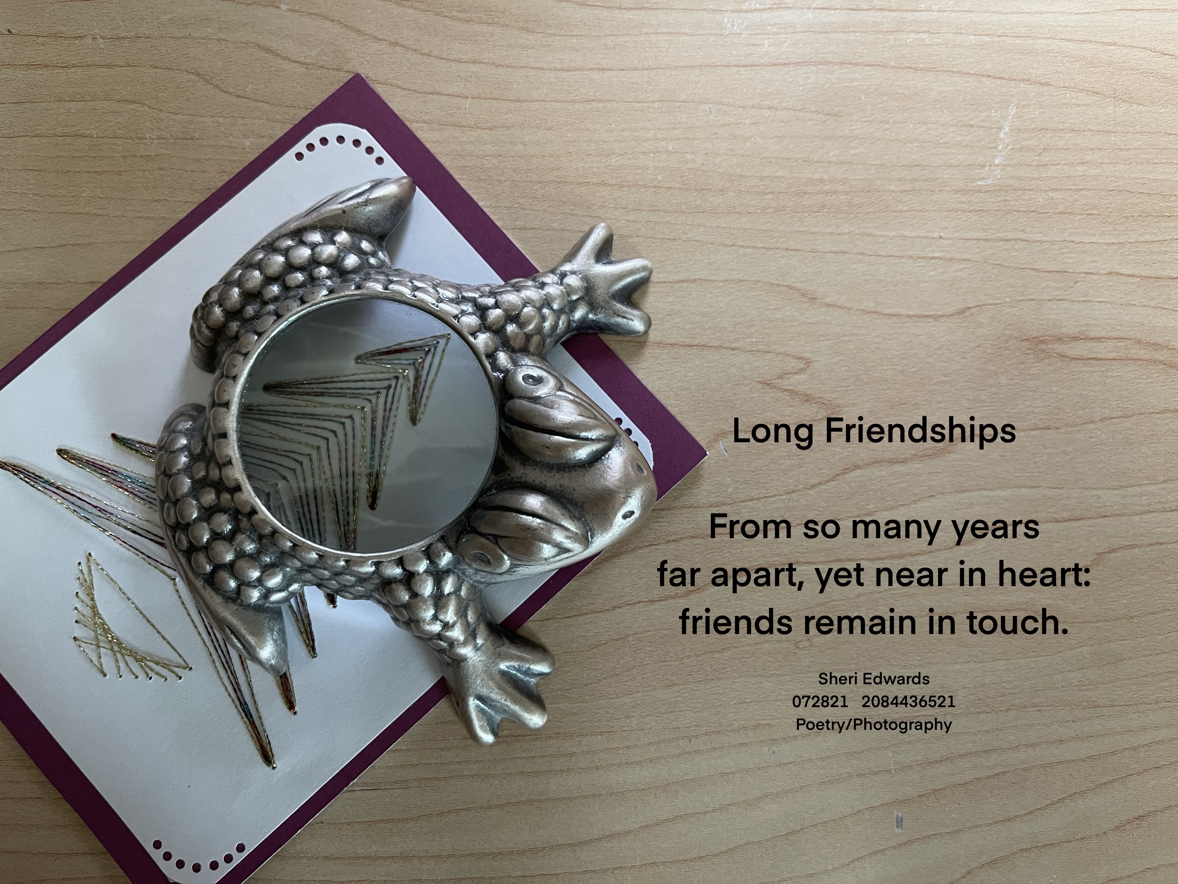 The image above is of two gifts she’s sent me over the years– a card and a frog magnifying glass.