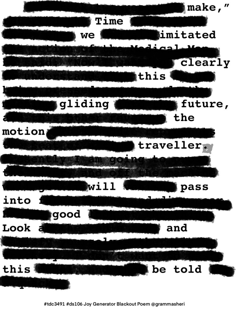 Today’s Daily Create [ @ds106dc #tdc3491 ] is sto use theNPR Joy Generator Blackout Poem Creator to create a blackout poem.