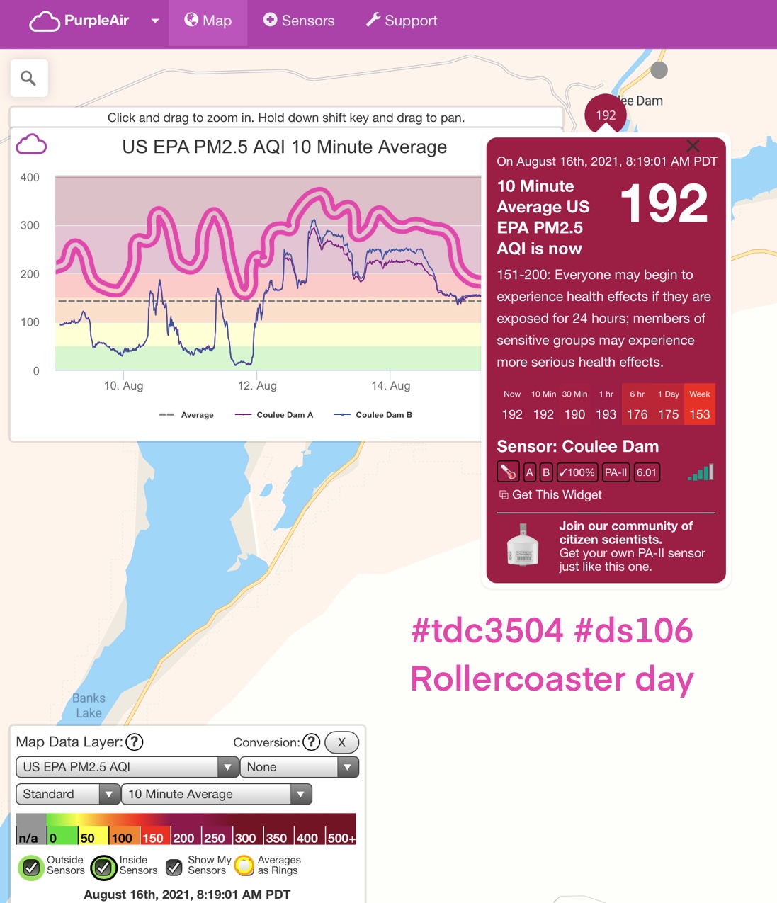 Today’s Daily Create [ @ds106dc #tdc3504 ] Rollercoaster day– and here’s the rollercoaster of records for air quality around here.
